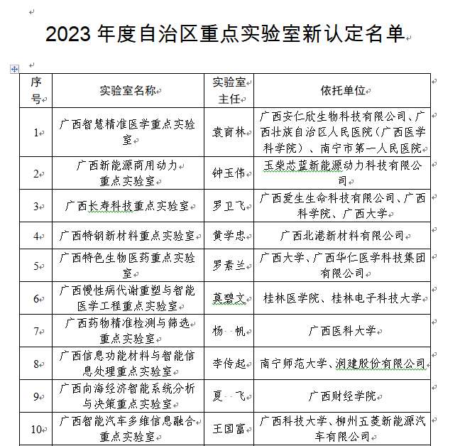 自治区重点实验室是广西科技创新体系的重要组成部分,也是广西最高级别的科研平台,其主要任务是解决学科发展前沿及自治区经济社会发展中的重要科学问题,组织开展高水平基础研究和应用基础研究,关键核心技术攻关,聚集和培养优秀科技人才,开展高水平学术交流,促进科技资源开放共享,面向自治区优势学科和经济发展优势领域开展创新性研究,进一步全面提升广西可持续创新能力。此次获得新认定的实验室有23家。