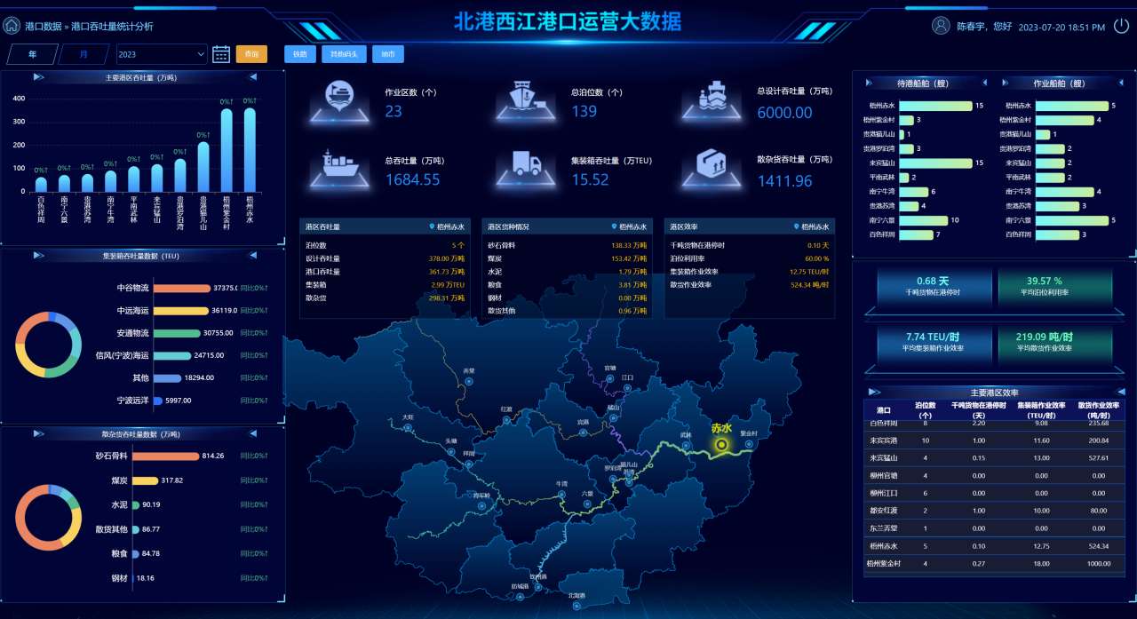 一年多来,在集团公司的统筹规划和北港大数据的协同支持下,北港西江港口“智慧西江”升级版建设取得丰硕成果。生产作业系统陆续在北港西江港口各港区投入使用,成功实施西江流域“港-航-闸”信息联动项目,这两项成果大幅提升了西江内河港口的数字化、智慧化水平。