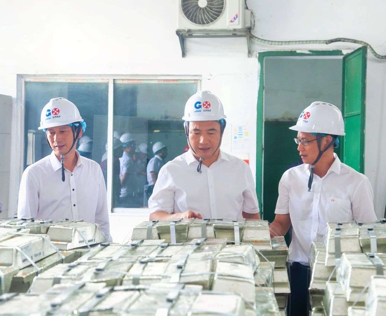刘胜友参观了来冶公司首条自动化生产线、成品库,查看现场的锡锭、锌合金产品、铟锭产品,询问了解产品特性、用途及有色金属行业发展前景。