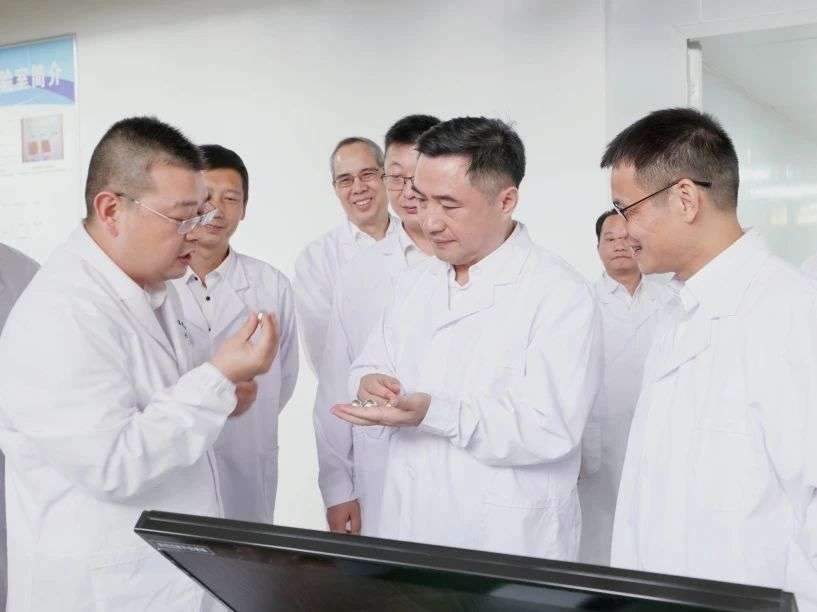 在设计研究院,刘胜友参观了铟锡资源高效利用国家工程实验室展厅,详细了解了华锡稀有矿产资源的现状和前景、产业发展路径以及华锡在深加工领域的技术创新和成果。