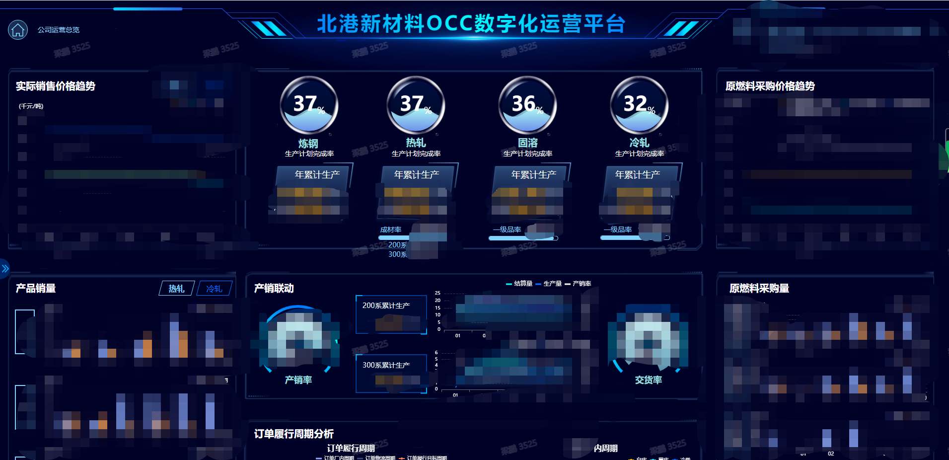 北港新材料基于大数据、云计算、物联网、区块链等新技术,聚焦不锈钢产供销联动,集成了ERP系统、生产管理系统、物流门禁系统及其它第三方系统等,搭建了包含订单履行、生产运营、销售运营、采购运营等主要业务环节在内的产供销联动数字化场景。经过多年改造整合,基本实现了不锈钢从设计到生产、从订单到销售、从原料到成品的全过程数字化管理及运营。