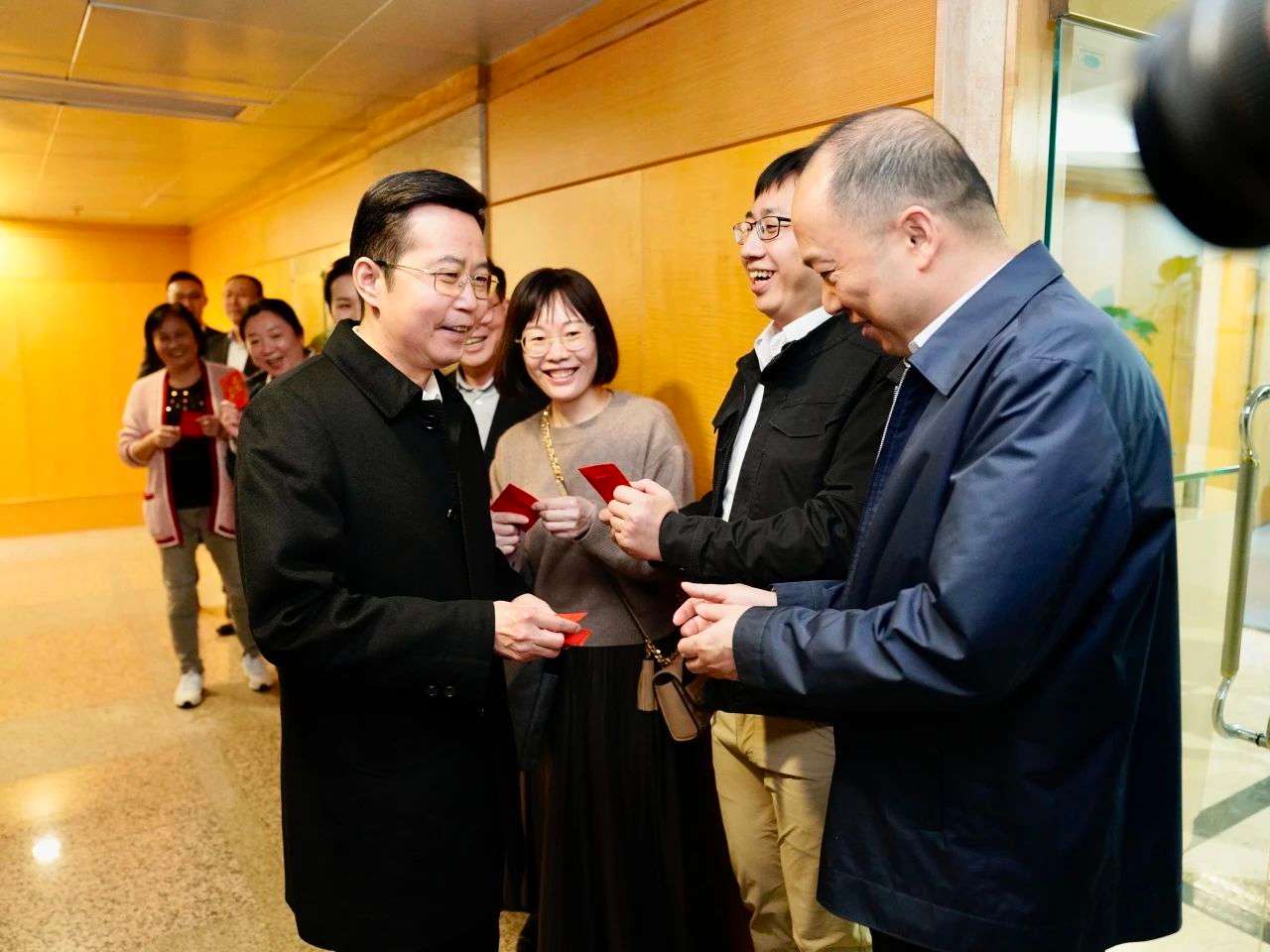 他一边给大家拜年送上新春的祝福,一边勉励着香港片区员工:要努力奋斗切实担当,叮嘱大家进一步向集团战略任务聚焦,各公司要整合资源,协同发力,提升管控效能,赋能业务升级,推动集团海外发展战略任务落地落实。