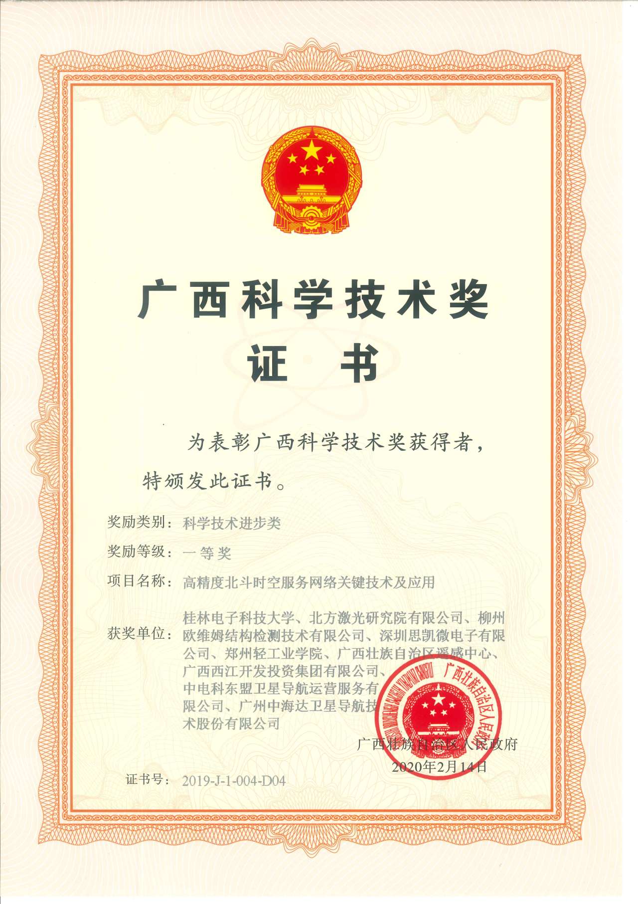 “高 精 度 北 斗 时 空 服 务 网 络 关 键 技 术 及 应 用”项目获得广西科学技术奖一等奖