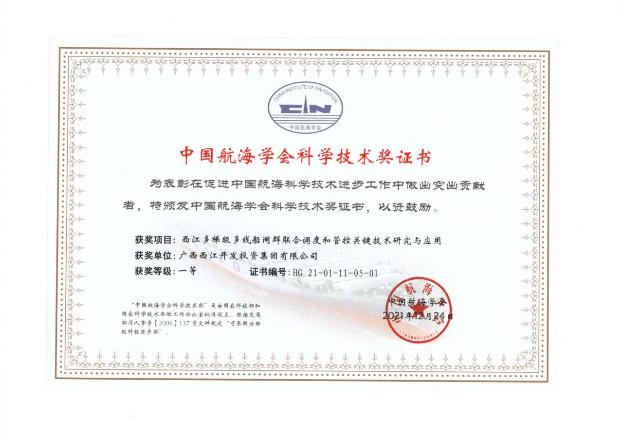 “西江多梯级多线船闸联合调度和管控关键技术研究与应用”项目获得中国航海学会科学技术奖一等奖